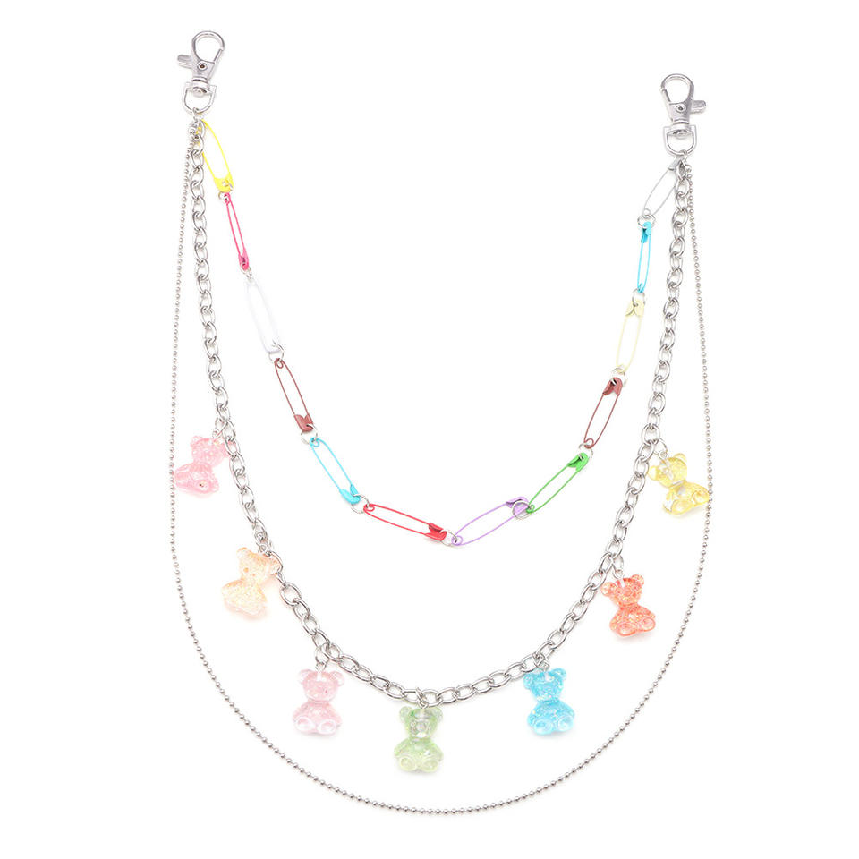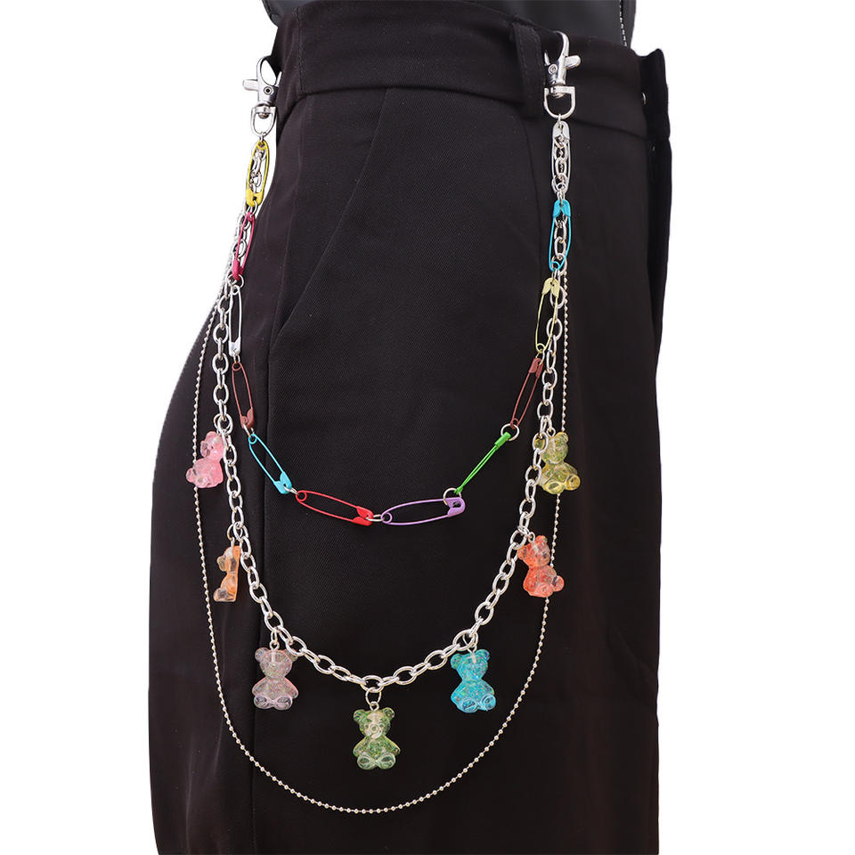 Chaîne de taille colorée en alliage de zinc avec pendentifs ours transparents et breloques oursons en gelée, accessoire de mode