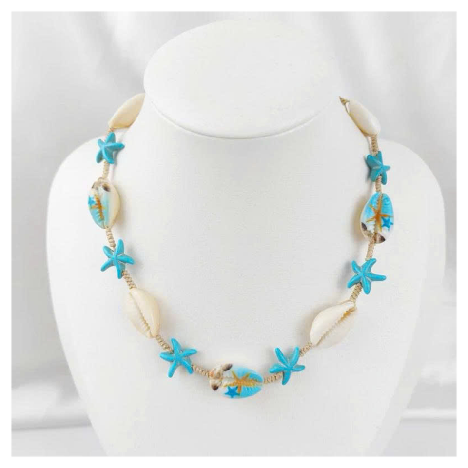 Collier de coquillages Boho coloré pour le style d'été Beau collier de coquillages de plage avec des coquillages d'étoiles de mer et des breloques lumineuses