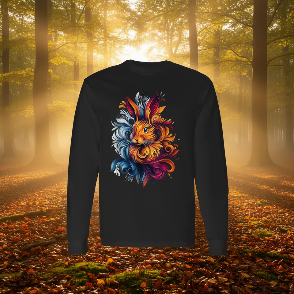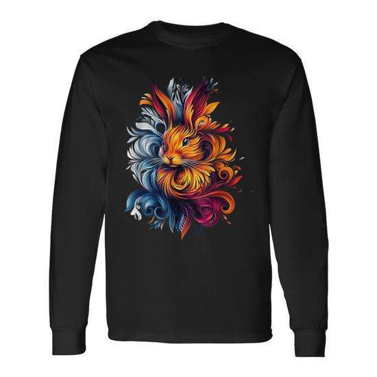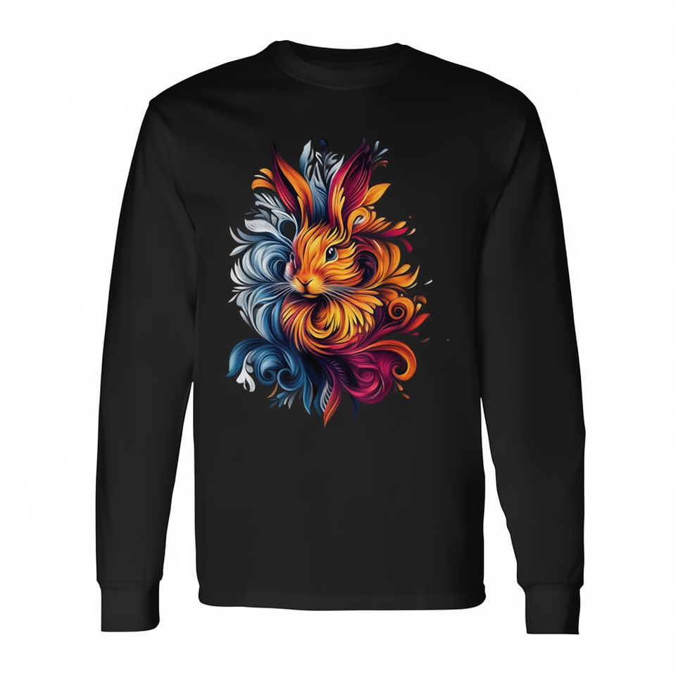 T-shirt à manches longues avec motif de lapin coloré, design artistique sur le thème de la nature et de la faune