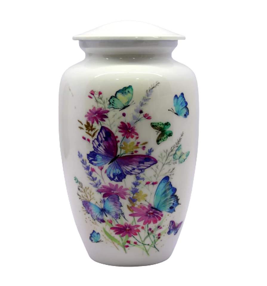 Papillons colorés imprimer 10 pouces urne de crémation en laiton Durable luxe mémorial cendres humaines conteneur personnalisable taille forme