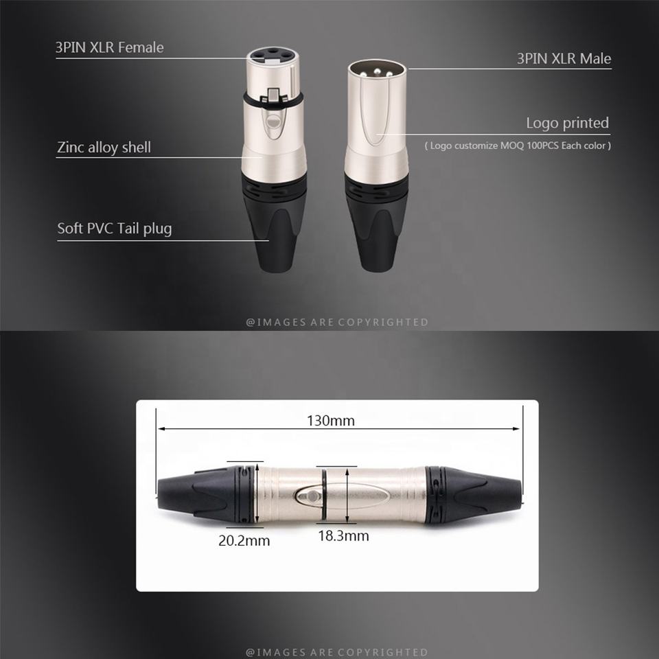 Connecteurs de câble audio pour microphone XLR 3 broches femelle mâle, connecteurs XLR plaqués nickel avec broches en laiton, canon coloré