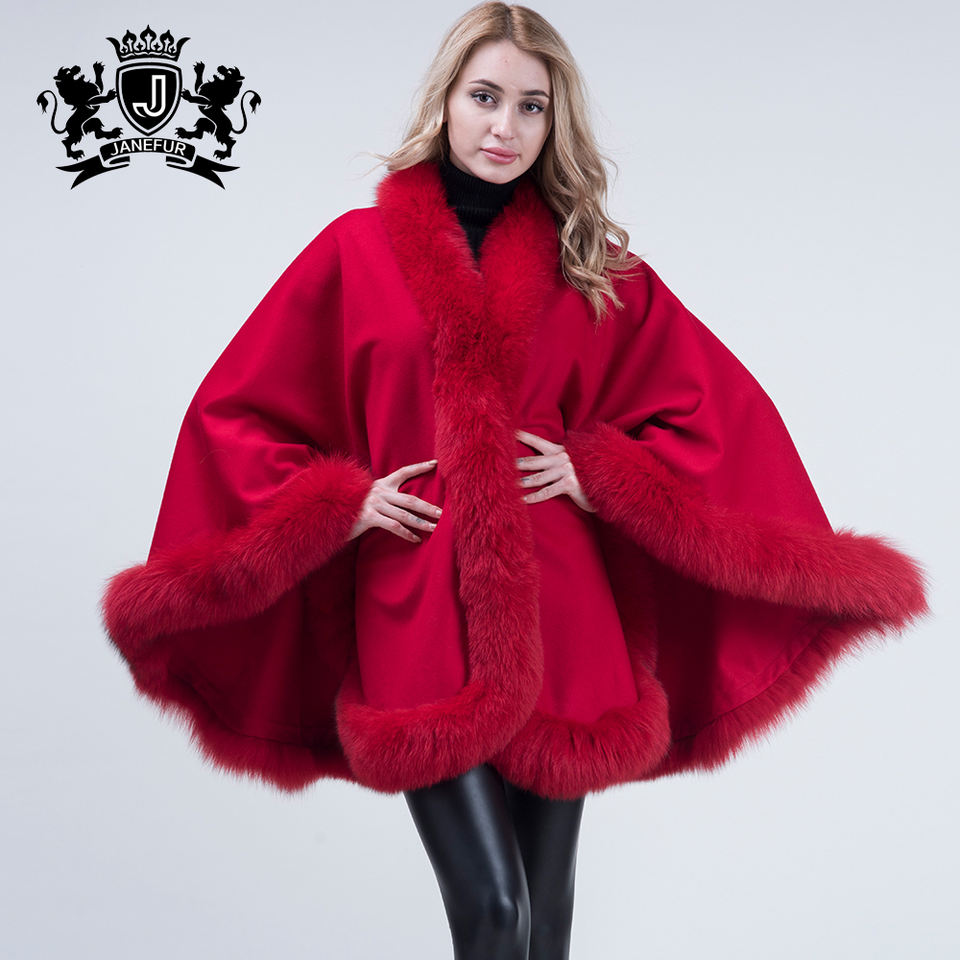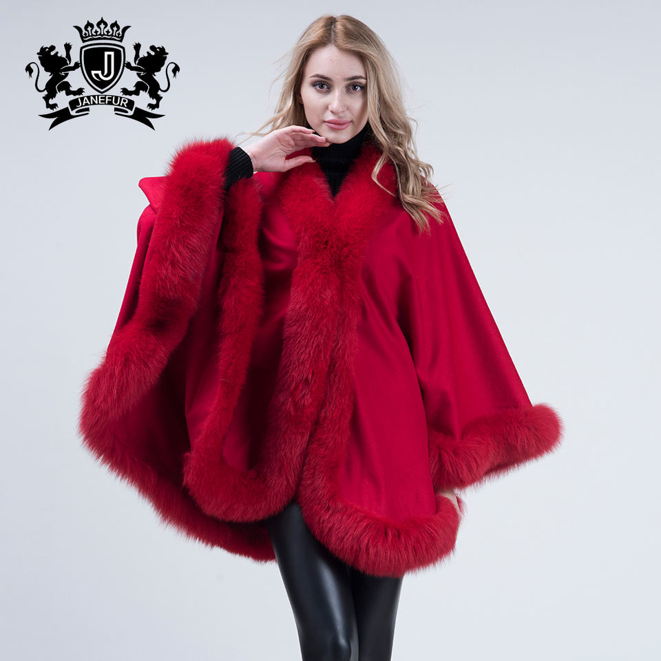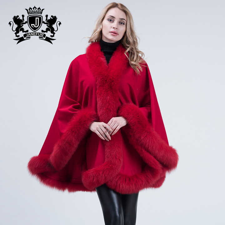 Cape en cachemire colorée avec fourrure de renard, châle en cachemire avec fourrure