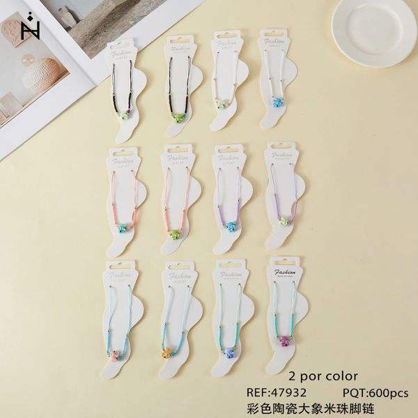 Chaîne de cheville éléphant en céramique colorée avec perles de rocaille, bijoux fantaisie, 2 couleurs par couleur, 600 pièces