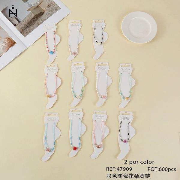 Chevillère en céramique colorée à motif floral, 2 pièces par couleur, bijoux de mode pour femmes