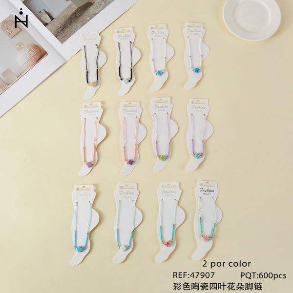 Bracelet de cheville fleur à quatre feuilles en céramique colorée