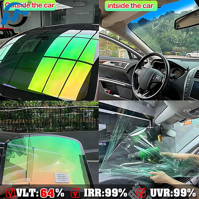 Coloré caméléon Aurora vert PET teinte solaire Film de Protection de pare-brise 64% VLT voiture avant fenêtre arrière Anti-UV isolation thermique