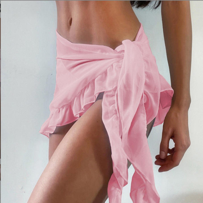 Nom du produit:Coloré en mousseline de soie de couleur unie Sarong tropical falbala piège pareo