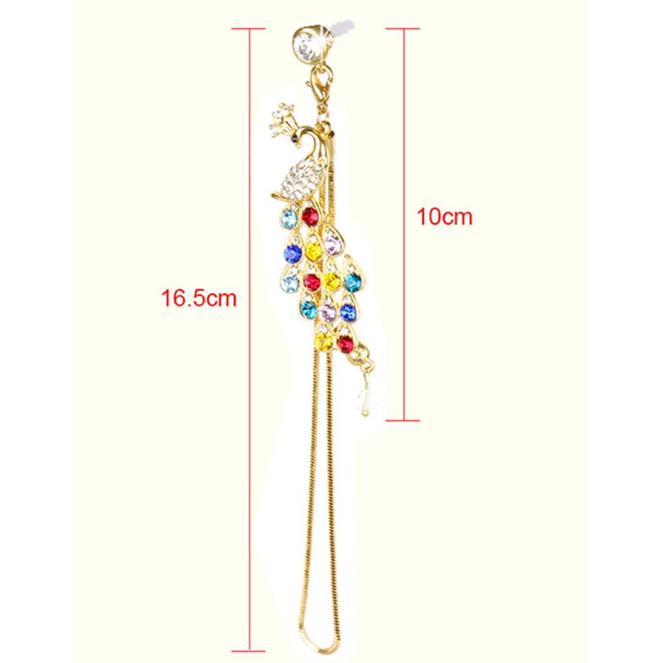 Pendentif décoratif coloré en cristal diamanté effet poussière de paon pour prise jack 3,5 mm de téléphone portable