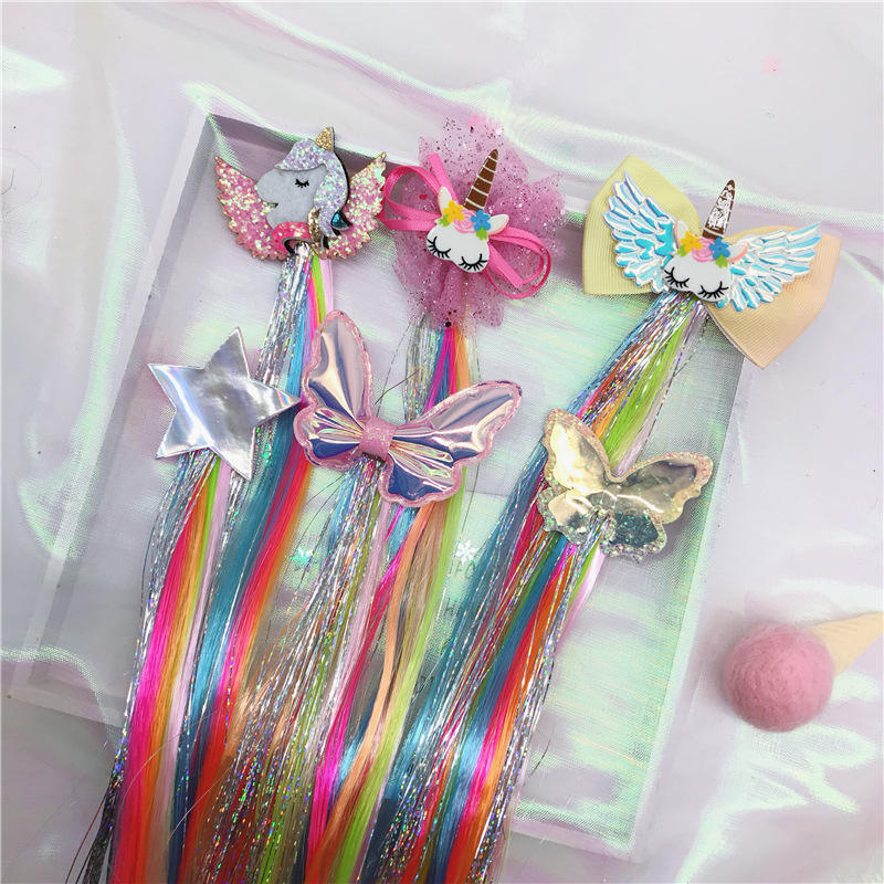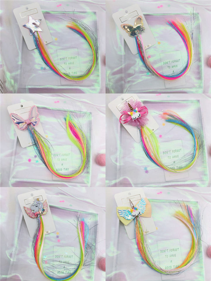 Pince d'extensions de cheveux bouclés colorés pour filles pinces à cheveux pour enfants queues de cheval arc-en-ciel pince à perruque épaisse (cheveux bouclés)