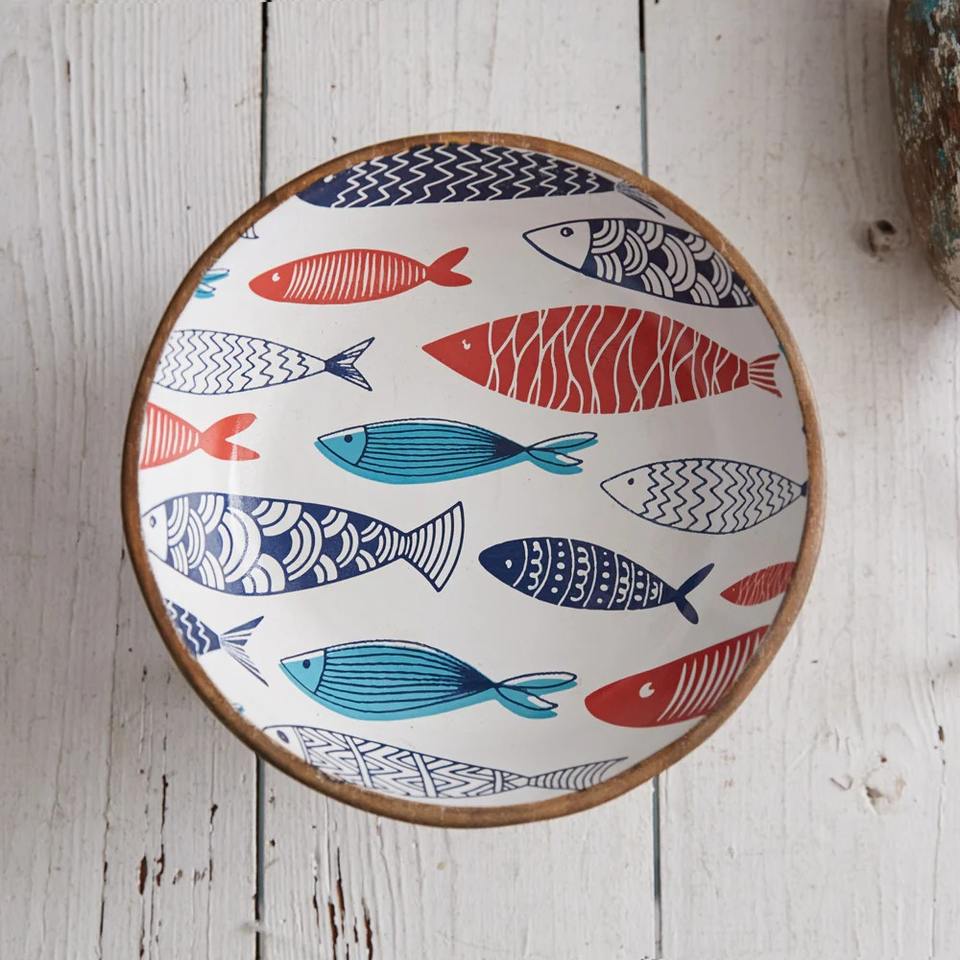 Bol à Poisson en Bois Poli de Style Campagne Écologique et Coloré
