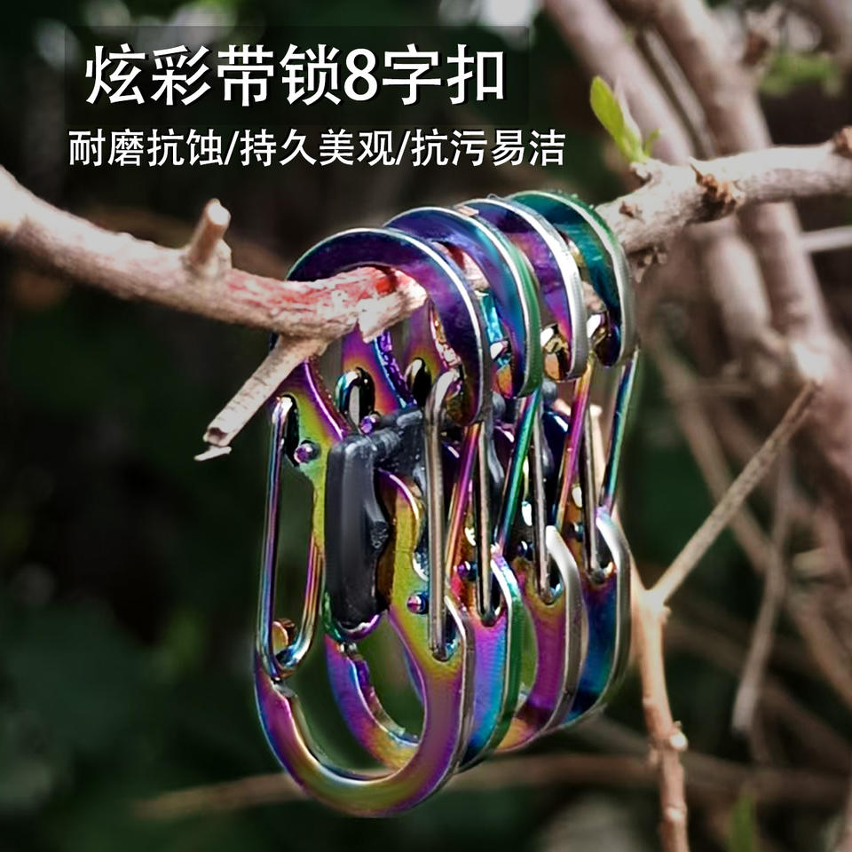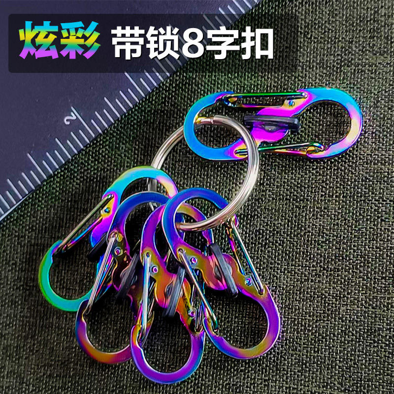 Mousqueton coloré en acier inoxydable en forme de 8, mini crochet de verrouillage pour l'escalade, équipement d'extérieur, accessoire de porte-clés