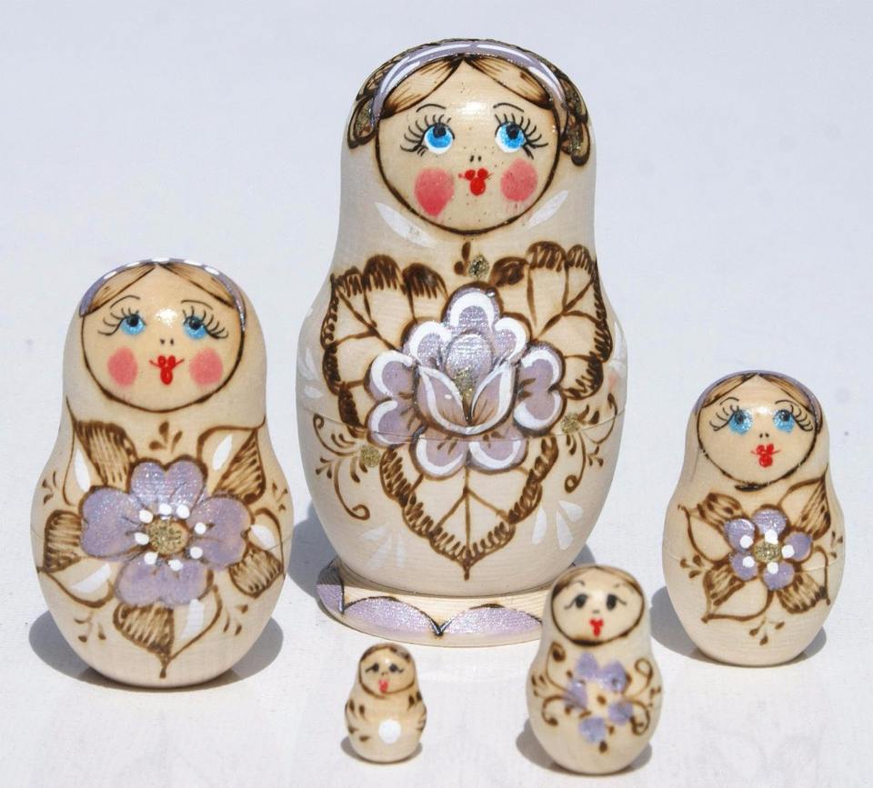 Fleur colorée pyrogravure 5 pièces enfants Art ensemble poupées matriochka en bois artisanat russe modèle enfants fait maison jouet russe