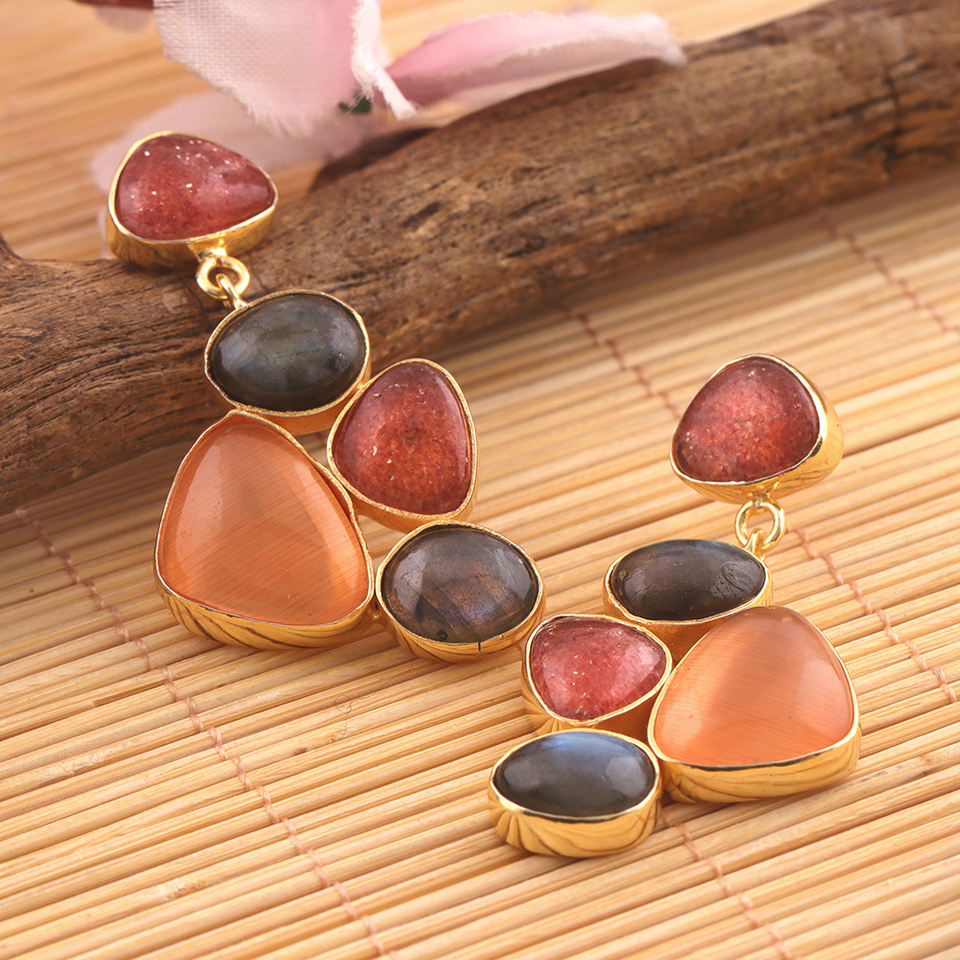 Nom de la pierre:Oeil de chat, Labradorite & Quartz cerise