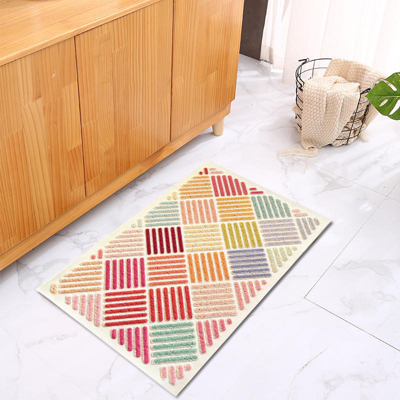 Tapis de salle de bain géométrique coloré rectangulaire antidérapant en PVC pour l'entrée de la maison et la salle de bain