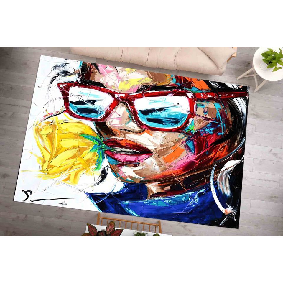 Tapis coloré avec portrait de femme style graffiti : Décoration moderne pour la maison, tapis à poils doux