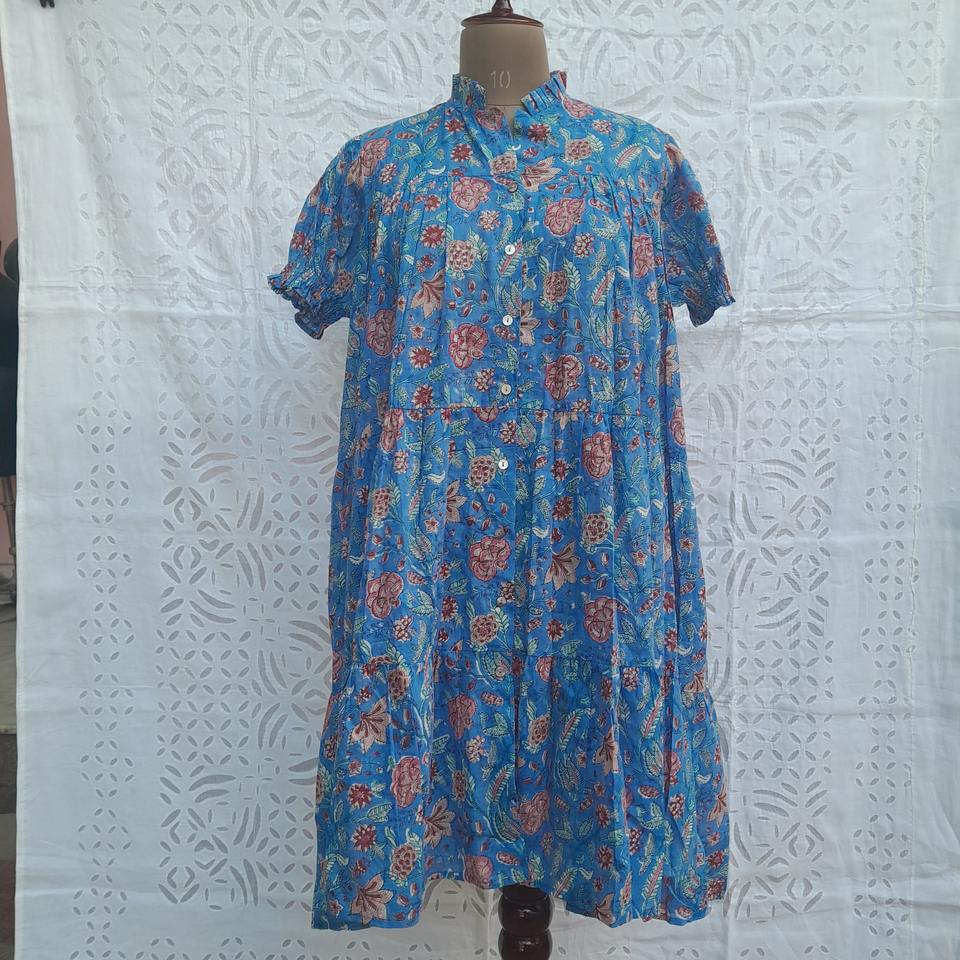 Product Name:Colorful Hand Block Printed Cotton Women Mid Calf Shirt Pattern Dress
