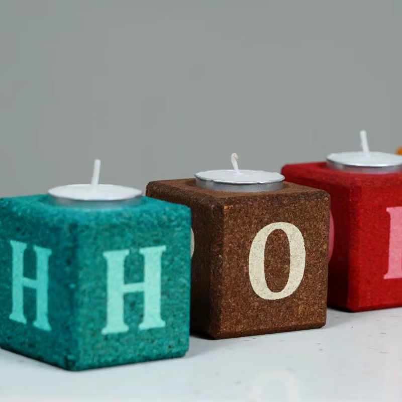 Bougies décoratives en résine unique de support de lumière de thé de cube en bambou fait main coloré pour la maison et les événements