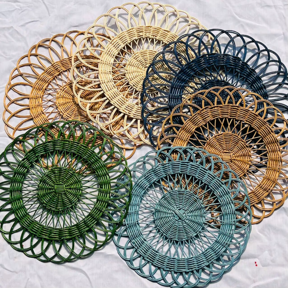 Sous-plat en rotin tressé fait main, écologique et coloré, motif tissé, support pour assiette, décoration de mariage, artisanat vietnamien en rotin