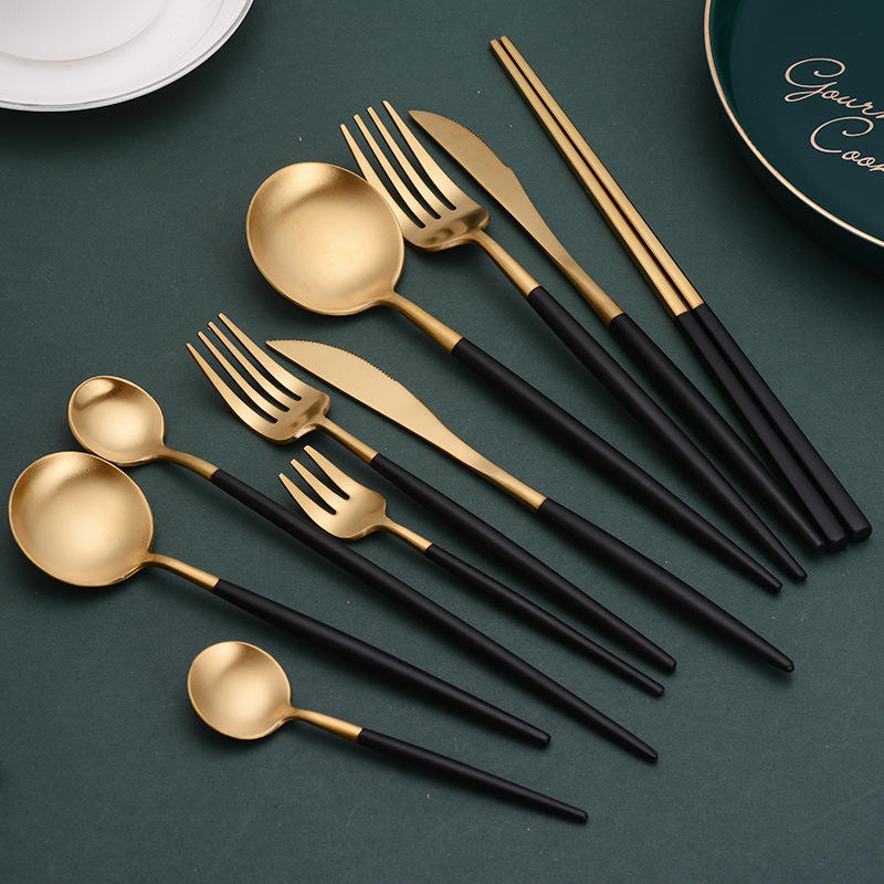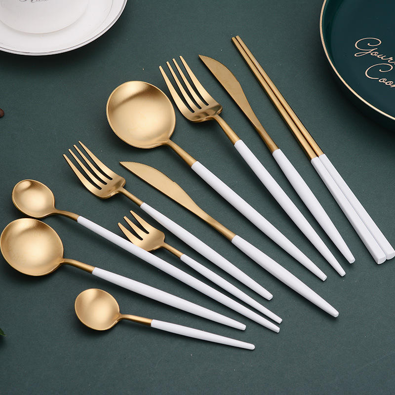 Poignée ronde portugaise Offre Spéciale colorée épaisse 10 articles ensemble de couverts en acier inoxydable classique polonais mat