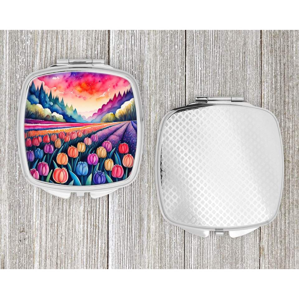 Jacinthes colorées miroir de maquillage de voyage compact miroir de poche pliant pour femmes et filles cadeau