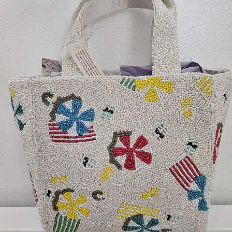 Sacs fourre-tout promotionnels de luxe en cuir brodé à la main indien, colorés, perlés, lavables, avec poignée baguette, artisanat ethnique