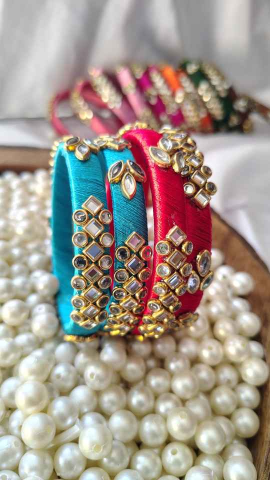 Coloré Jaipuri Fil De Soie Kundan Bracelets pour Femmes Meennakari Art Travail Faveurs De Mariage pour le Nouvel An Chinois Ramadan En Gros