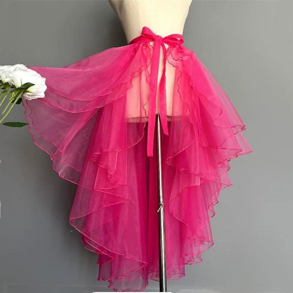 Coloré grand pendule irrégulière mi-longue Tutu robe gaze jupe femmes danse jupe portefeuille cravate
