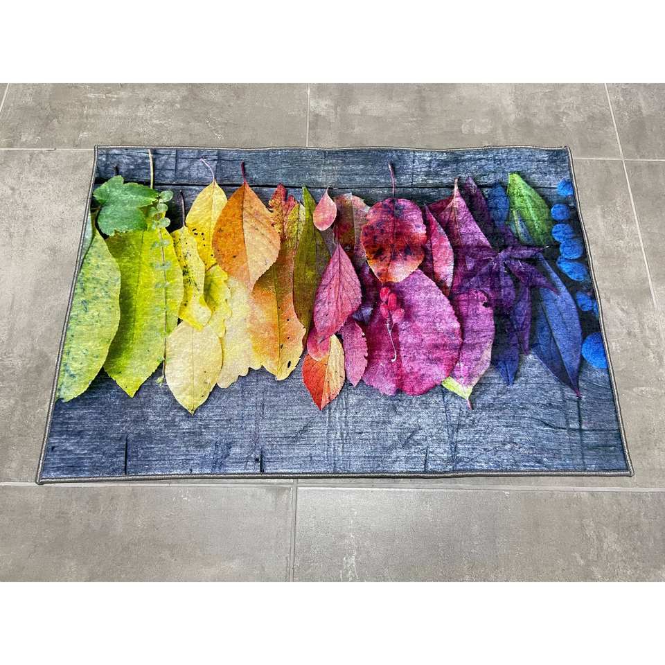Tapis en laine patchwork aux feuilles colorées, écologique, décoration traditionnelle d'automne, avec envers antidérapant en latex, tapis en chenille