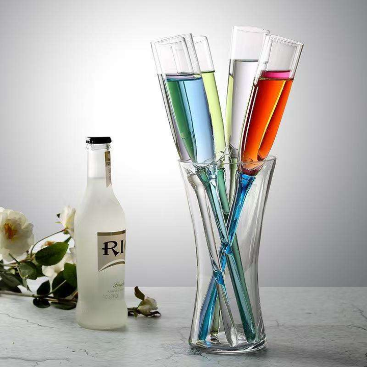 Colorful Long Stem Champagne Flute Set with Vase