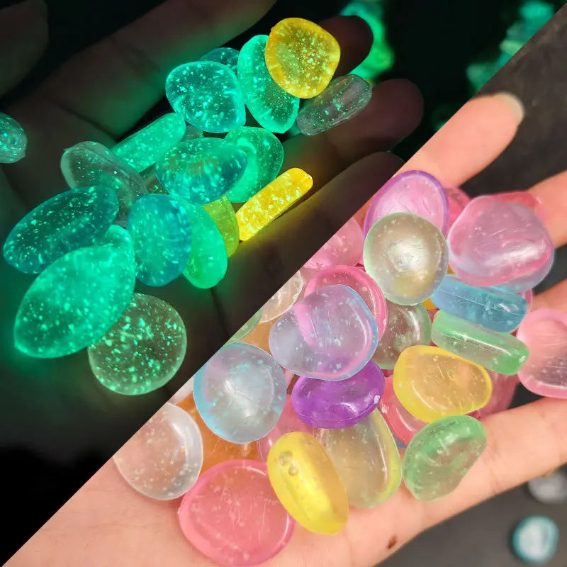 Cailloux lumineux colorés Aquarium Pierre Fish Tank Accessoires Aménagement paysager Aquarium Décoration 2cm sac de 50pc
