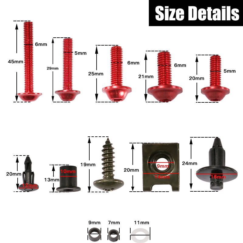 Vis de pare-brise colorées M5 M6, kit de vis de carénage de moto, vis de pare-brise pour motos universelles