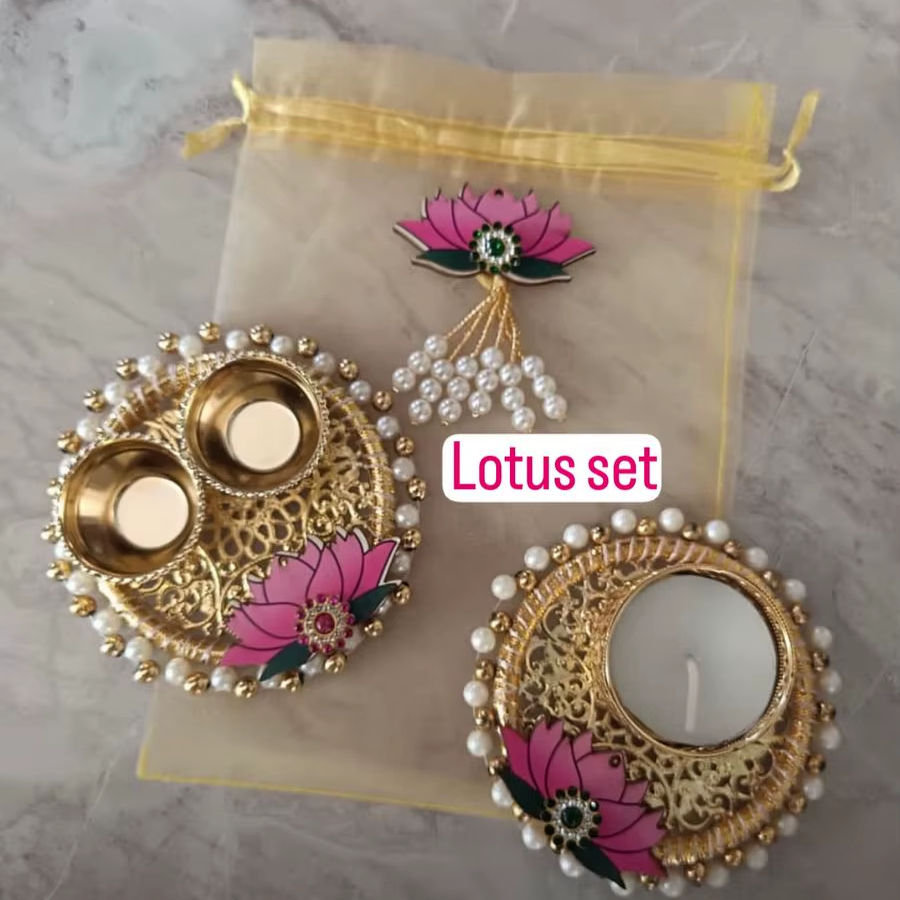 Coloré MDF Lotus Rangoli ensemble avec bougeoir en métal décor à la maison festif cadeaux de mariage pendaison de crémaillère faveurs décoration de Table