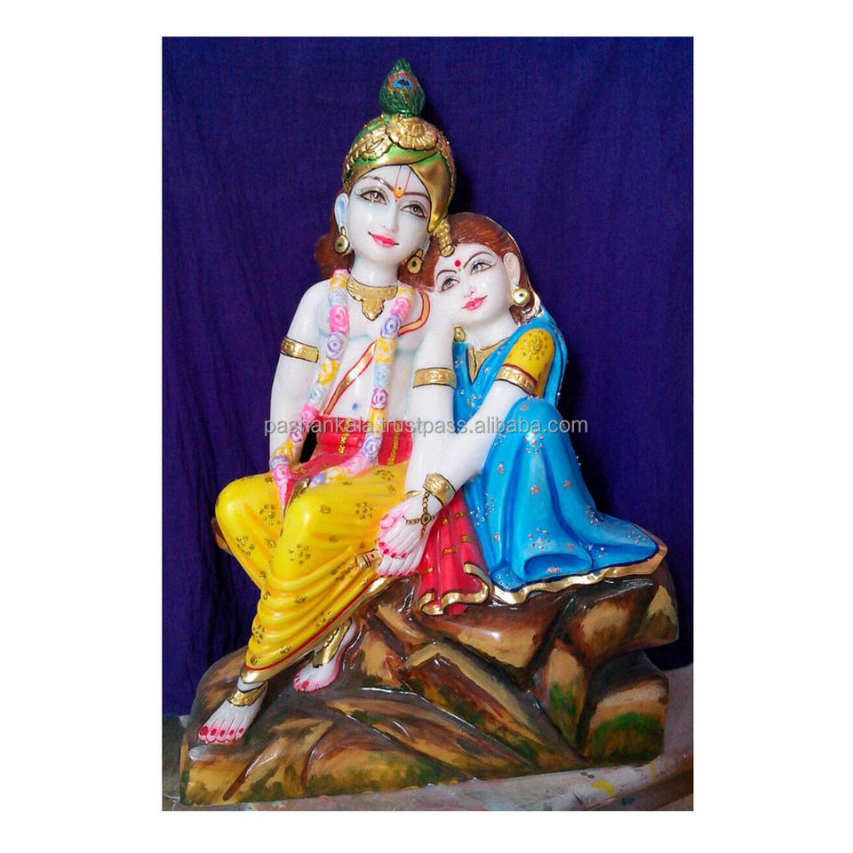 Statue de Radha Krishna en marbre coloré