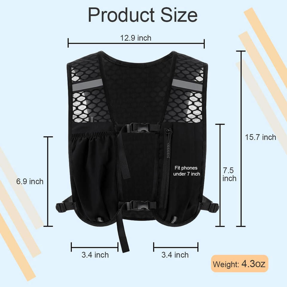 Gilet réfléchissant LED rechargeable USB coloré, taille moyenne, en nylon souple, pour la course nocturne, le cyclisme, la randonnée, avec support pratique pour téléphone portable