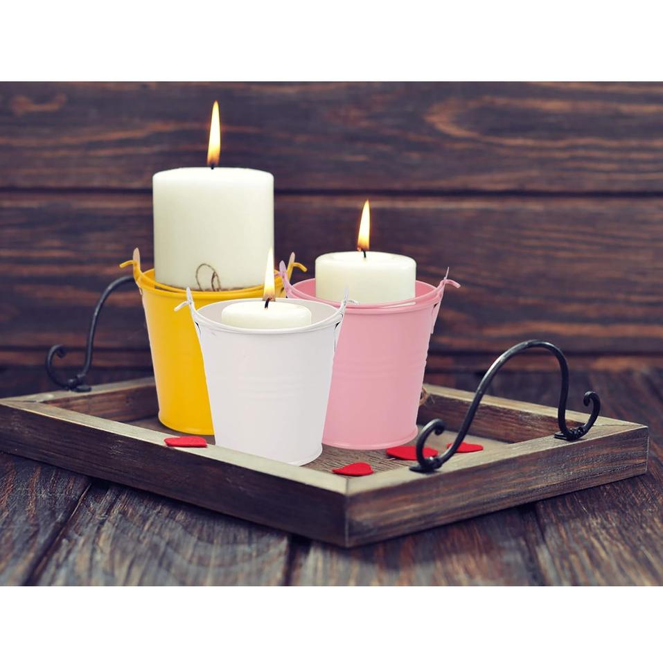 Jardinières de fleurs de seau en métal coloré avec poignées pour jardinières polyvalentes décoratives de jardin de salon à la maison