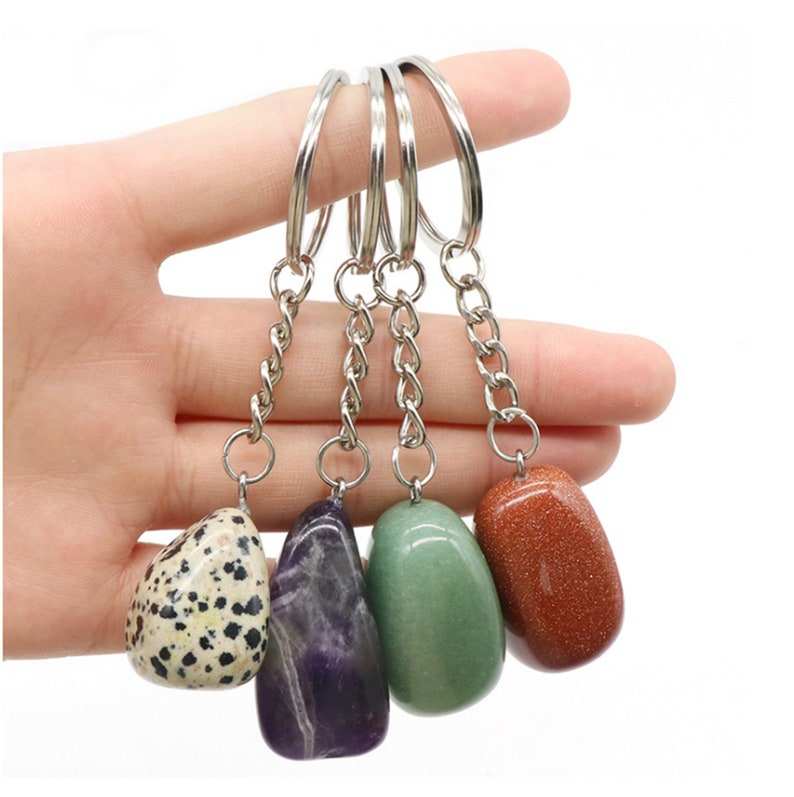 Mot-clé:Mélange coloré de la pierre gemme multi a roulé l'idéal de Keychain de forme