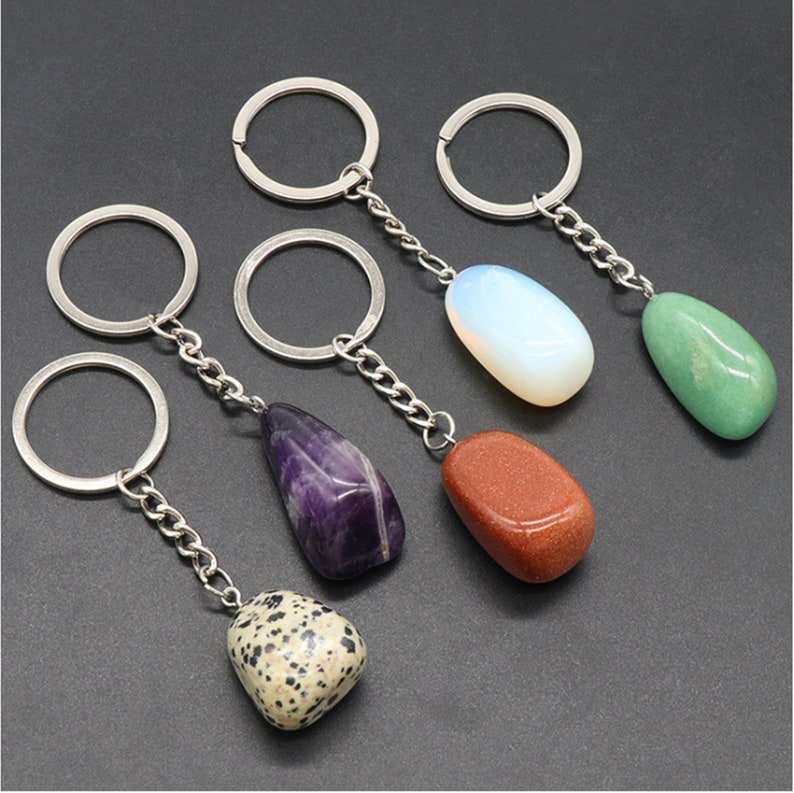 Mélange coloré de porte-clés en forme de pierres précieuses multiples, idéal pour les cadeaux d'accessoires personnalisés et de créations artisanales artistiques de qualité supérieure
