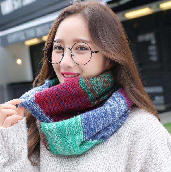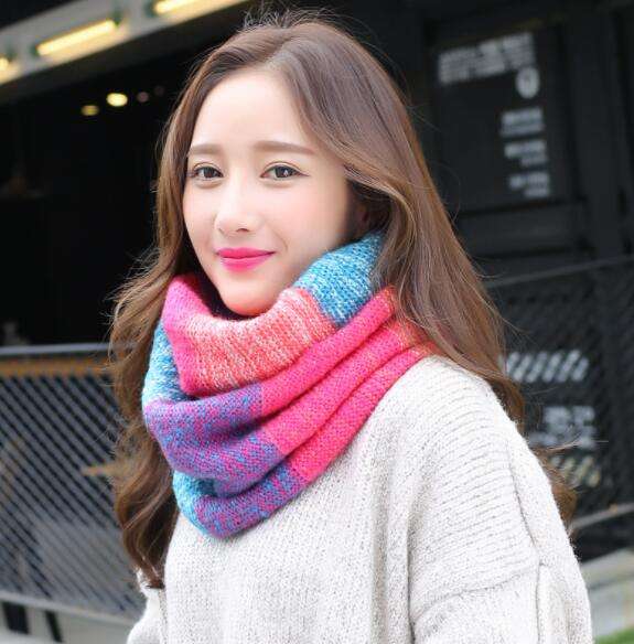 Écharpe cache-cou en acrylique tricotée pour l'hiver, mélange de fils colorés, style snood en cachemire, avec motif torsadé