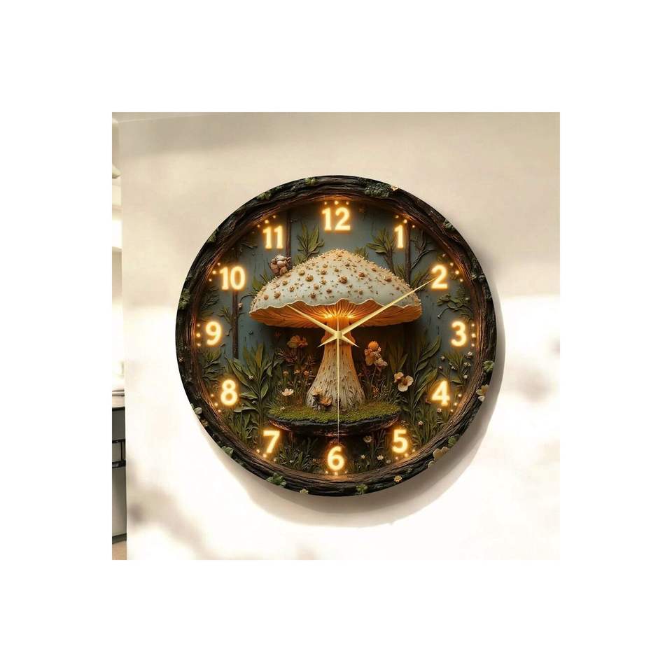 Horloge murale ronde silencieuse en bois avec motif de champignons colorés imprimés et numérotés, 45x45cm, design classique, idée cadeau