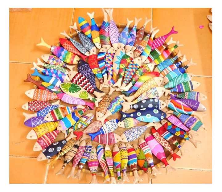 Décoration murale de poisson en bois naturel coloré peint en bois tenture murale poisson décoration de la maison/poisson en bois fait à la main du Vietnam