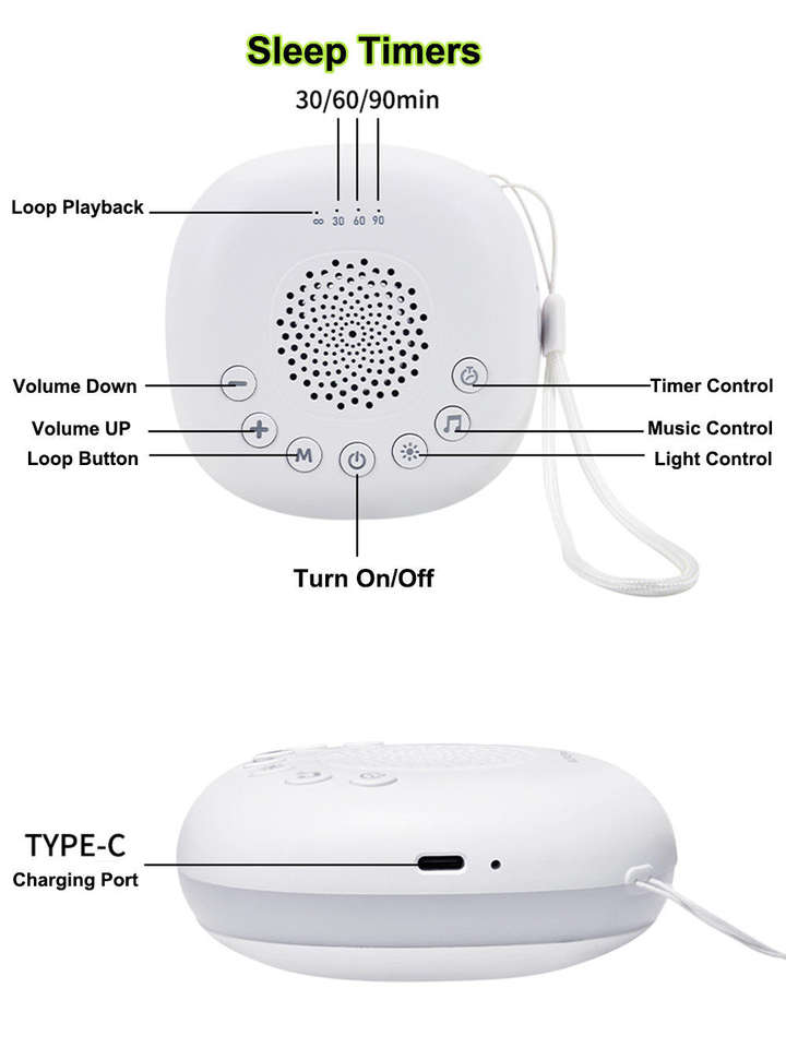 Veilleuse colorée avec machine à bruit blanc, machine à son portable rechargeable pour le sommeil des bébés et des adultes avec 20 sons apaisants