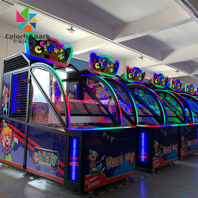 Jeu d'arcade de pièces de monnaie, parc coloré, équipement de divertissement, monnaie, jeux gote, clown fou, 2022