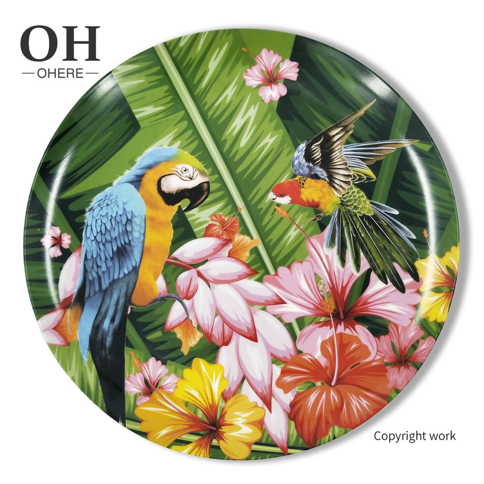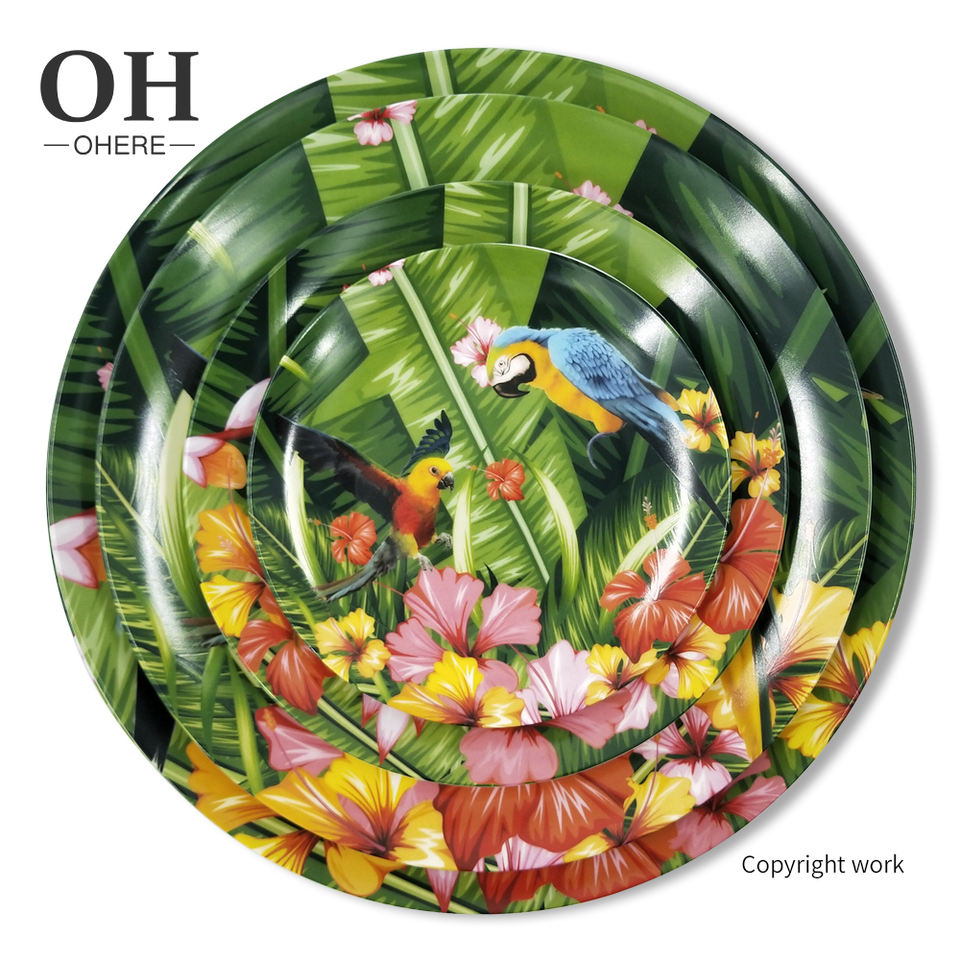 Autocollant de perroquet coloré sur porcelaine émaillée fournitures de fête jetables Style ensemble de vaisselle en céramique-assiette à salade plat à salade