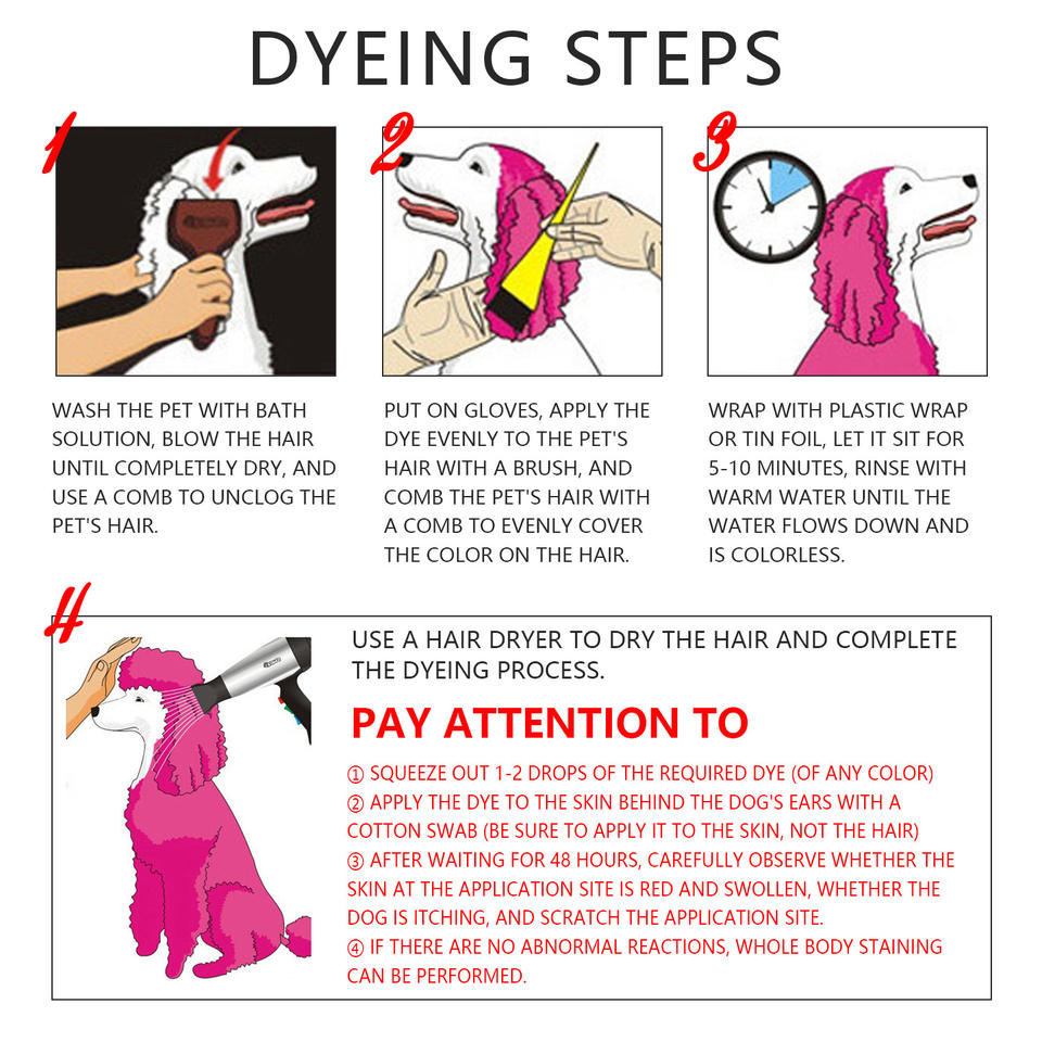 Mot-clé:Colorant de cheveux d'animal familier, couleur de fourrure de chien, peinture de toilettage d'animal familier
