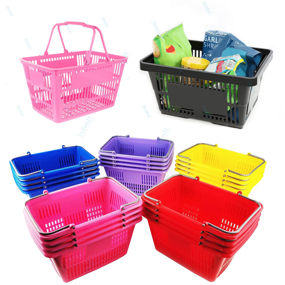 Paniers au détail en plastique colorés de paniers à provisions avec des poignées pour le centre commercial