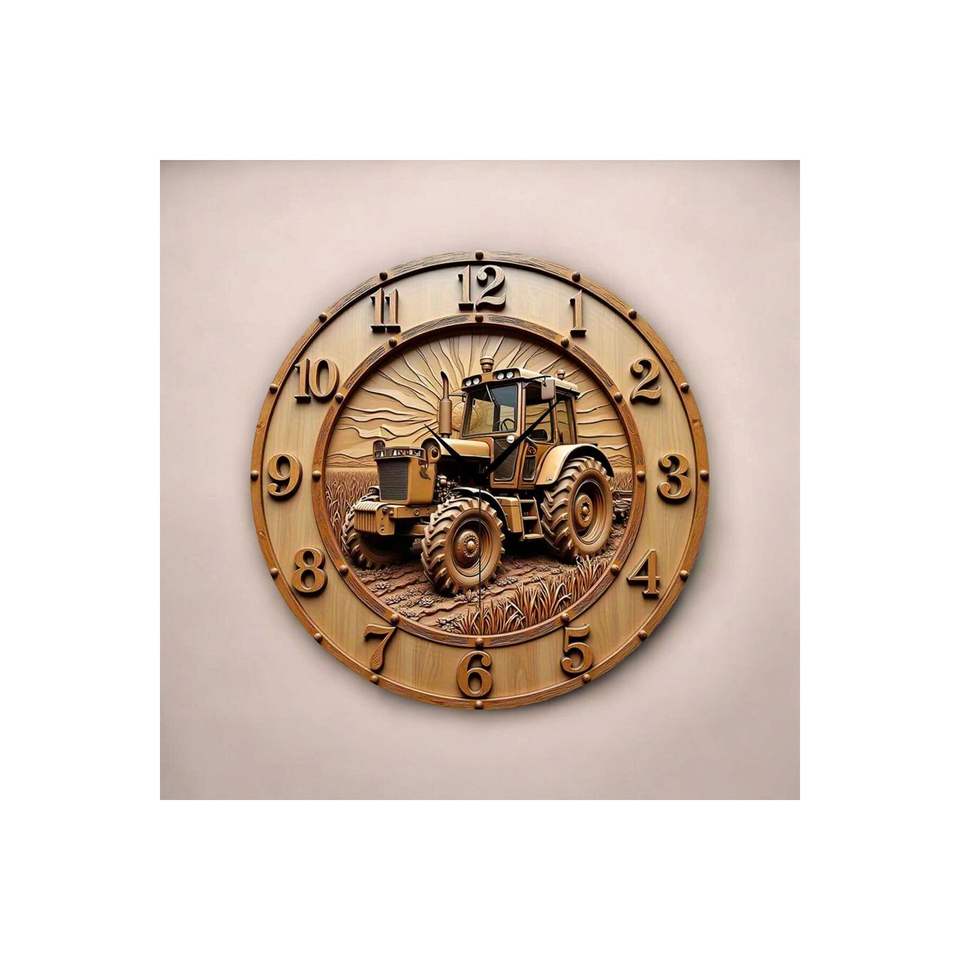Horloge murale ronde silencieuse en bois avec motifs imprimés colorés et numérotés 45x45cm TR Origin Cadeau pour les agriculteurs Design sur le thème des tracteurs