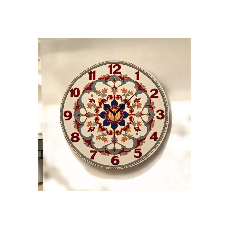 Horloge murale silencieuse classique en bois, motif imprimé coloré, numérotée, design floral, cadeau, 45x45cm