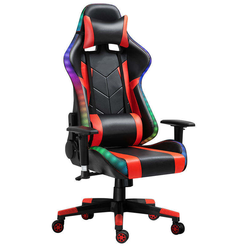 Chaise de jeu Predator avec éclairage LED RVB coloré, chaise de massage de course avec lumières et haut-parleurs