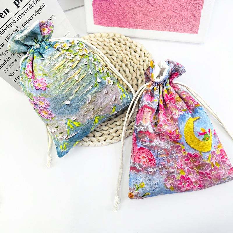 Sacs en coton recyclables colorés avec broderie personnalisée et revêtement aqueux pour l'emballage de cadeaux de bonbons