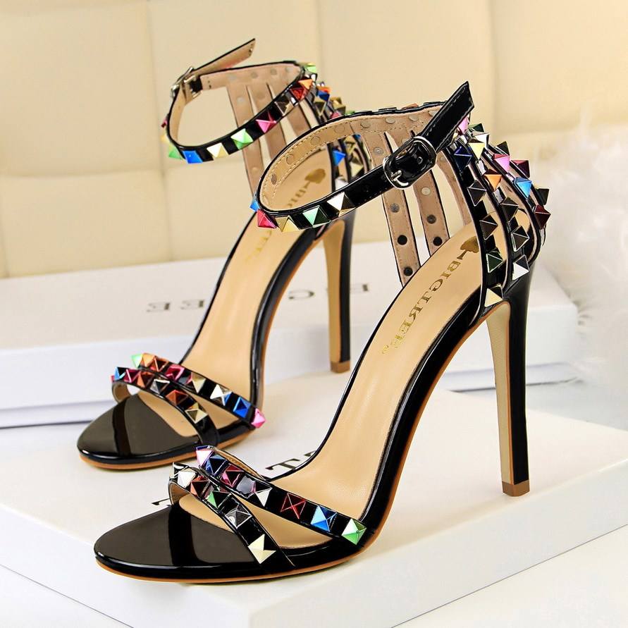 Sandales à Rivets Colorés 2025 – Chaussures à Talon Femme Bling Réfléchissantes Tendance 11CM – Talons Sexy pour Femmes